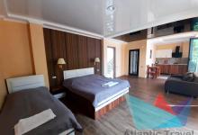 - 2-3-4х местный: ванная комната (туалет, умывальник, душ), телевизор, холодильник, кондиционер, чайник, фен, шкаф для одежды, стулья, Wi-Fi