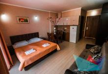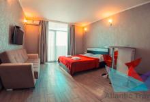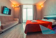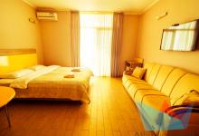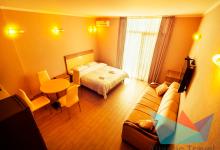 Просторные комфортные номера с панорамными видами. Во всех номерах имеется: большая кровать, раскладывающийся диван (полноценное спальное место), санузел с душевой кабиной + туалетно-банные принадлежности, балкон, бытовая техника: кондиционер, телевизор, минихолодильник, электрочайник, микроволновая печь, фен, набор посуды, wi-fi бесплатно