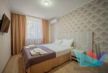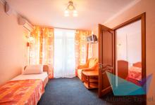 - 3х местный 2х комнатный Люкс 25 м2: одна двуспальная кровать, прикроватные тумбочки. В гостиной: диван, телевизор, холодильник, кондиционер. Санузел. Дополнительное место: диван. Максимальное размещение: 3 осн + 1 доп.место.