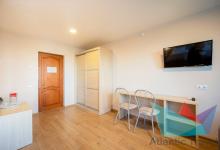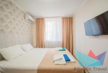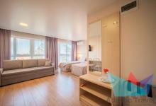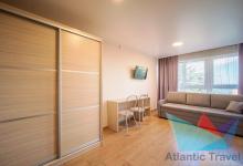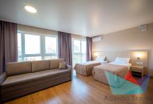 - 2х местный Студио 27 м2: две односпальные кровати, диван, телевизор, холодильник, кондиционер. Санузел. Дополнительное место: диван. Максимальное размещение: 2 осн + 2 доп.место.