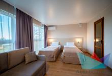 - 3х местный 2х комнатный 25 м2: одна двуспальная или две раздельные кровати. В гостиной: односпальная кровать и кресло-кровать, телевизор, холодильник, кондиционер. Санузел. Дополнительное место: кресло-кровать. Максимальное размещение: 3 осн место + 1 доп.место.