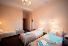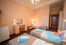 - 3х местный Стандарт 16-21 м2: три односпальные кровати, телевизор, холодильник, кондиционер.Санузел. Дополнительное место: не предусмотрено. Максимальное размещение: 3 осн место.