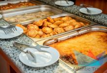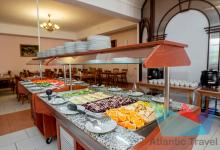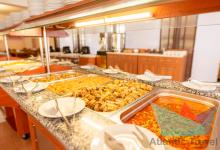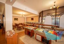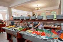 В ресторане представлено 3-х разовое питание по системе «шведский стол». Здесь гости найдут большой выбор блюд от шеф-повара: салаты, горячие и холодные закуски, первые и вторые блюда, кондитерские изделия и фрукты; безалкогольные и алкогольные напитки: компот, морс, чай и кофе, красное и белое вино, шампанское и пиво. Для маленьких гостей - диетические блюда, молочные каши, бульоны, молоко, йогурты, сухие завтраки.