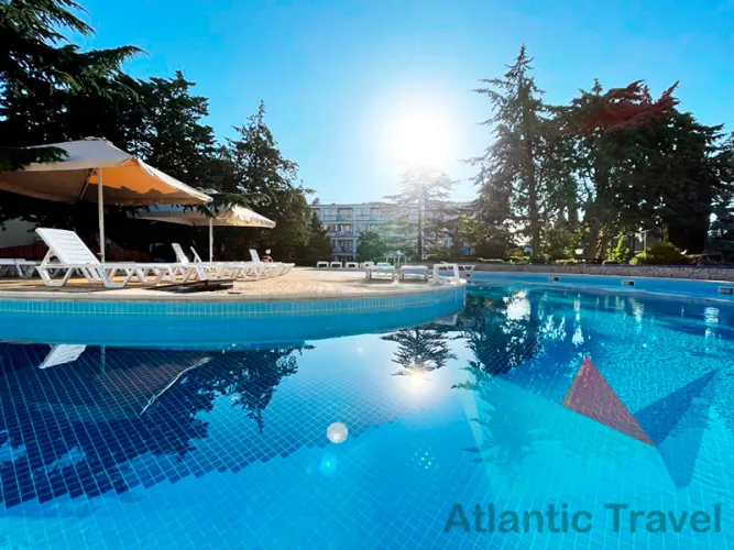 - открытый бассейн (без подогрева), оборудованный шезлонгами и зонтами;