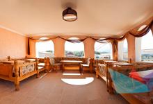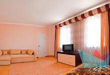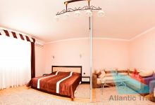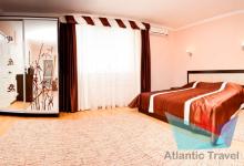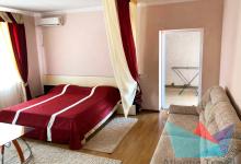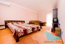 5ти местный Люкс 30 м2: набор мебели, телевизор плазменный, холодильник, кондиционер, двуспальная кровать евро, диван большой раскладной, кресло –кровать раскладное. Номер состоит из двух зон: гостевая и спальня, разделен декоративной перегородкой. Санузел. Без балкона. Выход на общую террасу галерейного типа. Максимальное размещение – 5 человек. Дети до 5 лет без места принимаются бесплатно.
