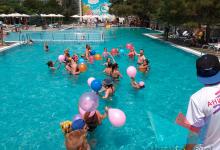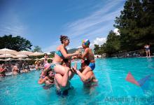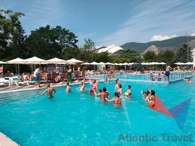 - большой бассейн разделен на три зоны: взрослую (глубина 170 см), зона для аквааэробики (120 см) и детская (80 см). Территория вокруг бассейна оборудована всем необходимым для отдыха: пляжная мебель (зонты, шезлонги, столики), кафе с напитками и мороженым, бесплатный WI-FI, раздевалка, душевые кабинки, санузел, зона для курения. Детям для плавания выдаются нарукавники или спасательные жилеты. Бассейн оборудован современной круглосуточной системой очистки и фильтрации морской воды.