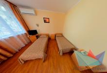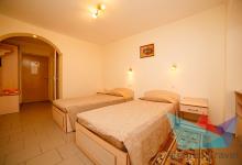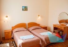 - 2х местный Стандарт 12-14 м2: две односпальные кровати, телевизор, холодильник, кондиционер. Санузел. Дополнительное место: еврораскладушка. Максимальное размещение: 2 осн + 1 доп.место.