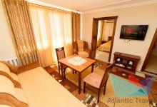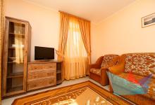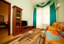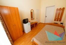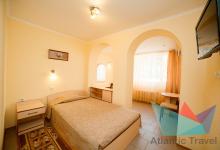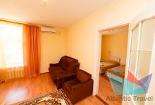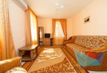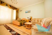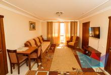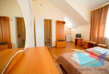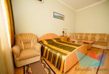 - 2х местный 3х комнатный Люкс 40-50 м2: двуспальная кровать, телевизор, холодильник, кондиционер. Большой балкон с видом на море. Санузел. Дополнительное место: диван раскладной, кровати. Максимальное размещение: 2 осн + 2 доп.место. Питание в ресторане Консул.