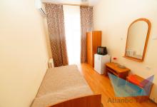 - 1но местный Стандарт 14-16 м2: односпальная кровать, телевизор, холодильник, кондиционер. Застекленная лоджия (не везде). Санузел. Дополнительное место: еврораскладушка. Максимальное размещение: 1 осн + 1 доп.место. Питание в ресторане Шелковый путь.