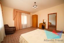 - 2х местный 2х комнатный Люкс 38-40 м2: двуспальная кровать, телевизор, холодильник, кондиционер. Балкона нет. Санузел. Дополнительное место: диван раскладной. Максимальное размещение: 2 осн + 2 доп.место. Питание в ресторане Консул.