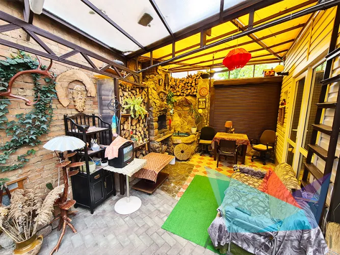 Трехкомнатный купеческий дом, в нем: одна смежная и две изолированные комнаты, кухня, санузел, прихожая. Напротив дома закрытый под навесом дворик.