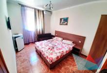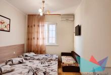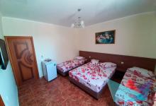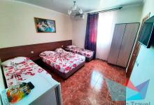 • 3х местный Стандарт: двуспальная кровать, односпальная кровать или три раздельные кровати, кресло, прикроватные тумбочки, шкаф, кондиционер, телевизор, холодильник, душ, санузел, холодная и горячая вода круглосуточно, общая терраса). Количество спальных мест: 3.