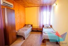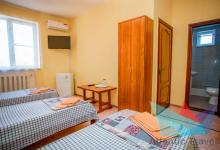 • 2-3х местный Эконом Блочный: две кровати, кондиционер, столик, шкаф для одежды, тумбочка, зеркало. Санузел на два номера (душевая кабинка, унитаз, умывальник, зеркало).