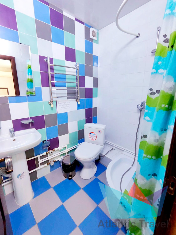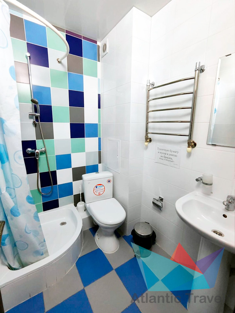 • 4х местный Полулюкс: кровати, тумбочки, журнальный столик, туалетный столик, стул, шкаф для одежды, вешалка, зеркало, cплит-система, холодильник, кран с водой и раковина, туалет, душ, телевизор.