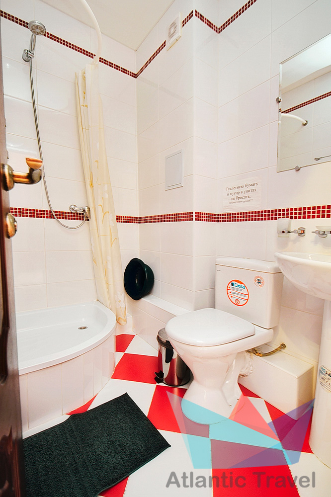 • 2х местный Полулюкс: двухместная или две одноместные кровати, тумбочки, журнальный столик, туалетный столик, стул, шкаф для одежды, вешалка, зеркало, cплит-система, холодильник, кран с водой и раковина, туалет, душ, телевизор. Номер может быть с балконом и без.