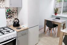 На первом этаже гостевого дома находится просторная кухня для самостоятельного приготовления: газовая плита, микроволновая печь, набор всей необходимой посуды.
