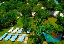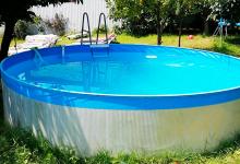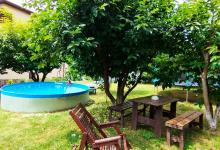 - открытый каркасный бассейн с лежаками и шезлонгами