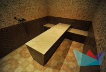 Настоящая русскаябаня на дровах и турецкая баня(хаммам), бассейн с прохладной водой, а также бильярд, тренажеры и комната для отдыха.