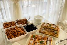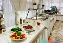 Во время рациона подается: Завтрак- холодное шампанское (брют, полусладкое). Обед- вина (сухие, полусладкие, десертные) Ужин- коньяк, водка, чача. Напитки безалкогольные: охлажденные компоты, морсы, соки, а также чай, кофе и кисломолочные продукты. Ароматная выпечка собственного производства и сезонные фрукты в ассортименте.