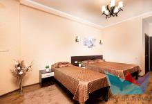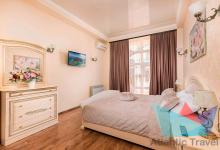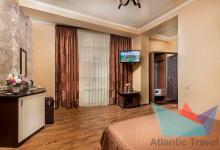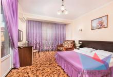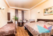 3х местный Стандарт: санузел, двуспальная кровать и односпальная или 3 односпальные кровати, шкаф-купе, прикроватные тумбочки, стол, кресло или диван, косметический столик с зеркалом, журнальный столик, стулья, сплит-система, балкон, холодильник, телевизор, Wi-fi, фен, полотенца, средства личной гигиены, сейф, чайник. 1-2 дополнительных места или детская кроватка