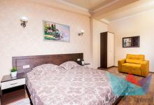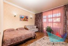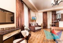 4х местный 2х комнатный Стандарт Family: санузел, двуспальная кровать раскладной диван / кресло, шкаф-купе, прикроватные тумбочки, стол, косметический столик с зеркалом, журнальный столик, стулья Удобства: сплит-система, балкон, холодильник, телевизор, Wi-fi, фен, полотенца, средства личной гигиены, сейф, чайник. 1-2 дополнительных места или детская кроватка